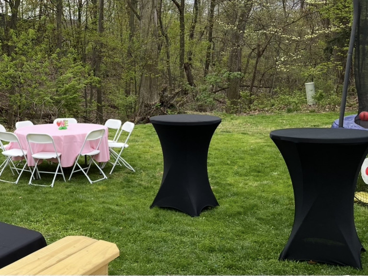 Two High Top Tables with spandex table cloths (as pictured) for just $50